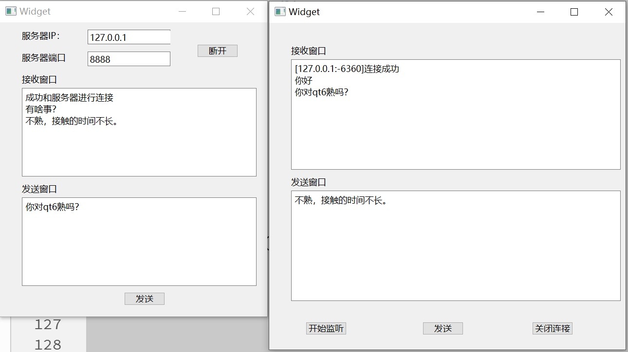 处理方式如下所示。通过右击该按键,在弹出的快捷菜单上点击槽函数,再建槽函数,然后运行该项目,编译时报错,此时删除报错的那一行,保存文件并重新运行,服务器端正常运行,并能发送信息。运行界面如下所示。