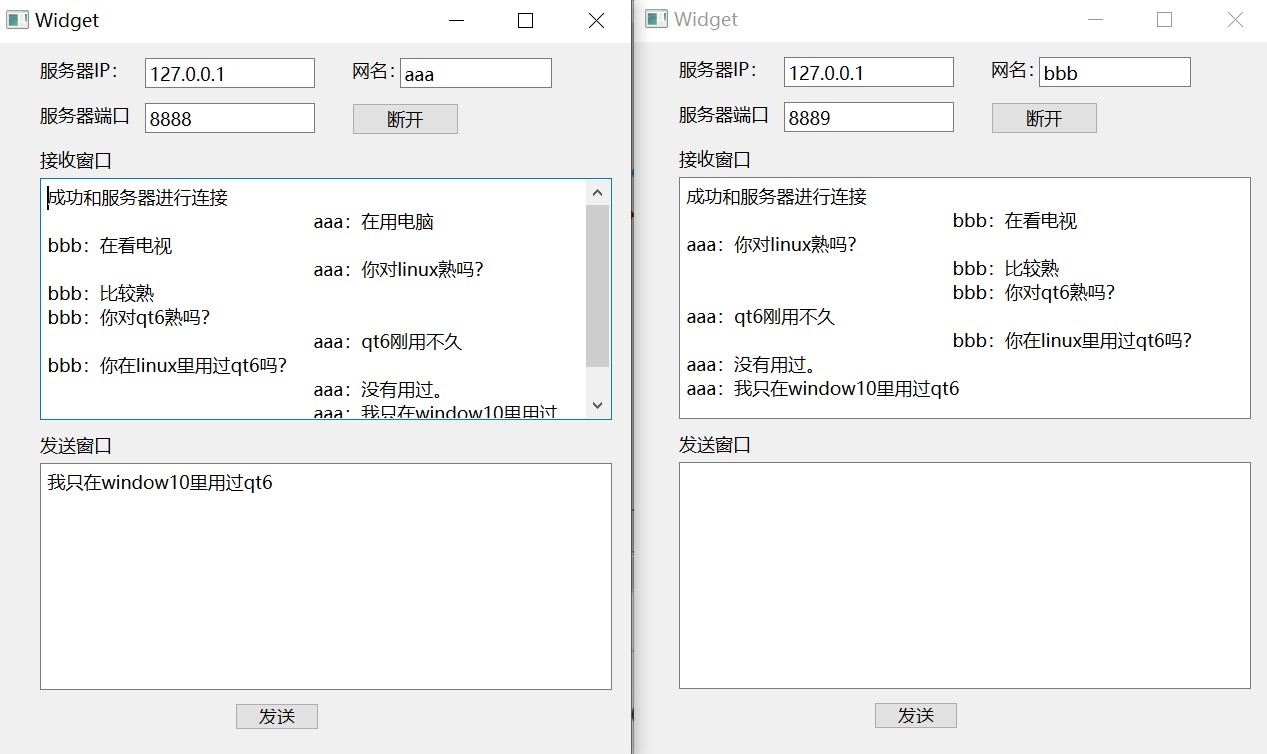 使用了qt6.9带的qt creator 17修改C++程序。书上有一个服务器与通信端通信的小程序,能让服务器与通信端通信。但是实际上两个客户端聊天功能更实用。于是为了实现该功能,对该程序进行了修改。在程序中使用了两个端口:8888、8889。