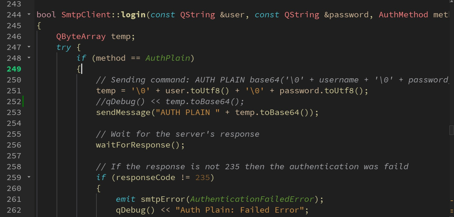 修改一个在旧的qt里编译的c++ smtp客户端程序,使该程序能够连接邮件服务器,并且能够发送文本邮件。