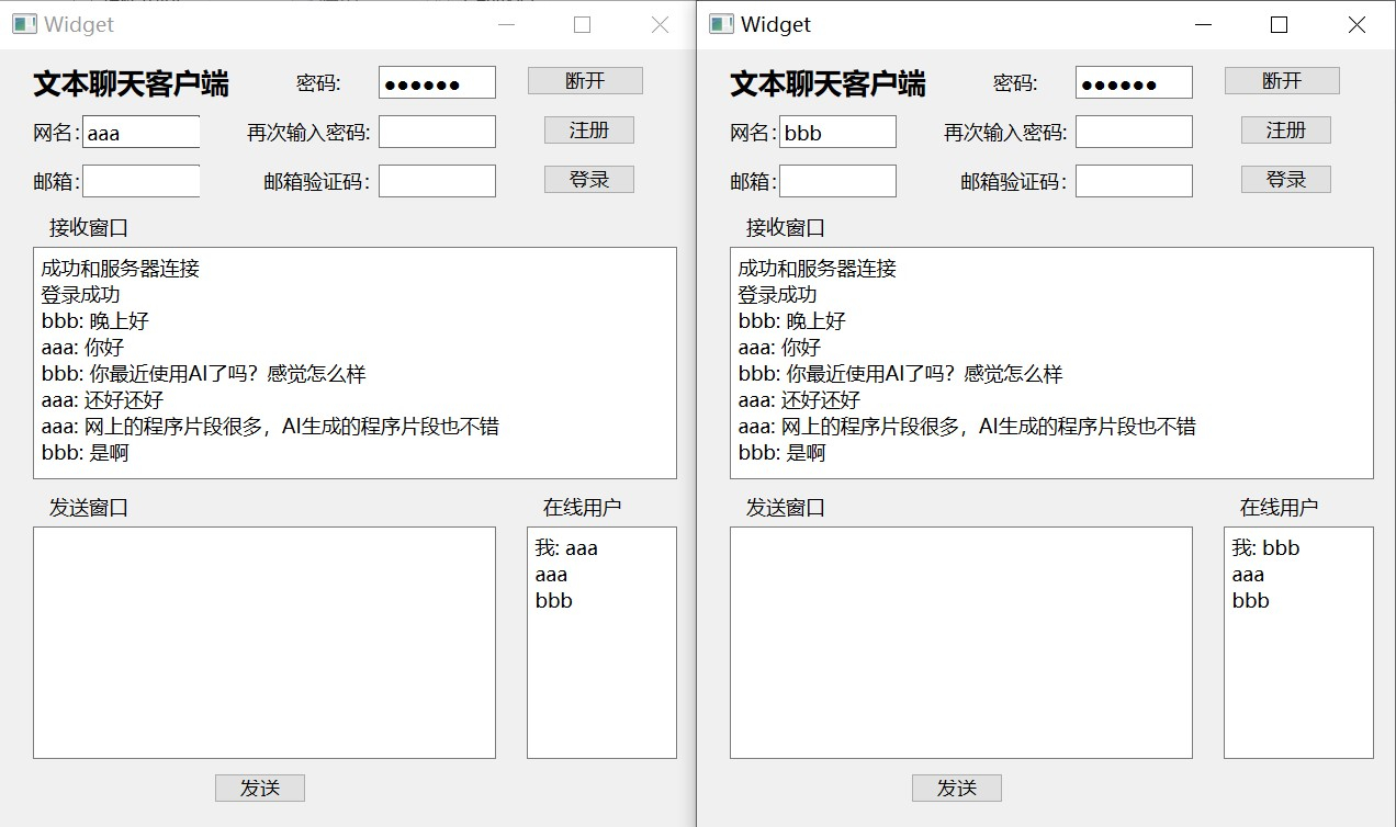 在qt6编译的用c++语言编写的一个简单的文本聊天软件已完成