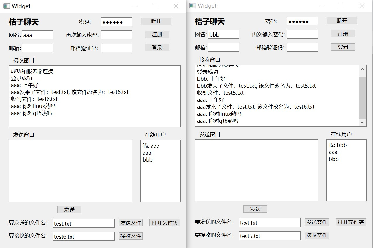 qt6 c++ 给网络聊天软件添加了发送和接收文件的功能。