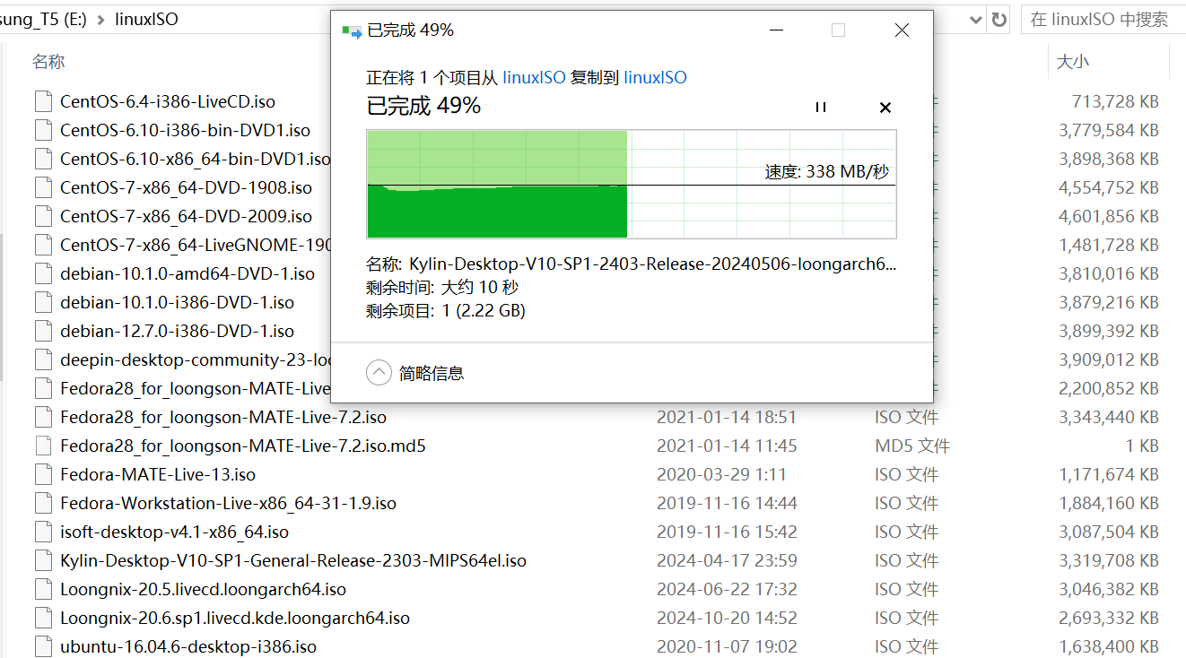 type C接口的外置固态硬盘复制iso文件速度达到300多M每秒